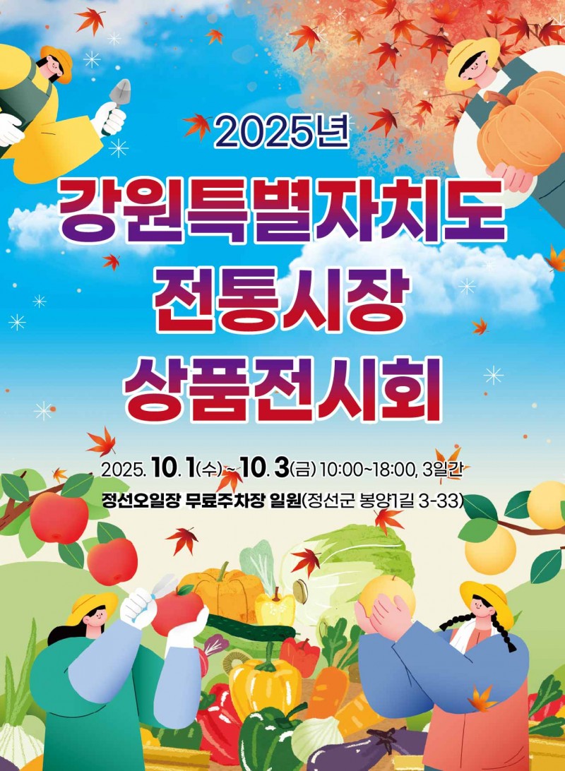 강원특별자치도상인연합회(회장 한두삼)는 10월 1~3일 정선 오일장무료주차장 일원에서 도내 우수 전통시장이 참여하는 ‘2025 강원특별자치도 전통시장 상품전시회’를 개최한다.